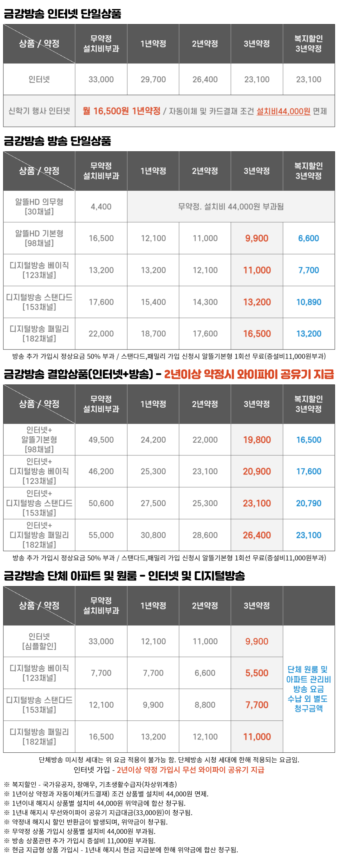 ※ 인터넷 단독 상품으로 적용 불가 / 기존방송 시청 및 방송신규 가입시 적용됨